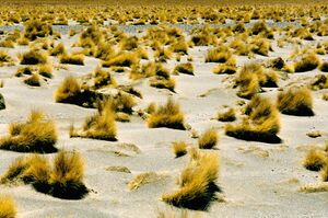 (_Jarava ichu_, anteriormente clasificado como _Stipa ichu_). Especie de planta gramínea perenne de porte robusto y apariencia rústica que domina visual y ecológicamente los paisajes de la alta ...