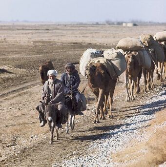 Grupo de gentes que, en la antigüedad, particularmente en Asia y África, se juntan para hacer un viaje con seguridad a bordo de carros, carretas, caballos o camellos que van uno detrás de otro y poco ...